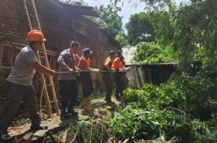 Sebuah pohon dengan diameter 60 cm tumbang menimpa rumah milik Bapak Sudarno di RT 02 …